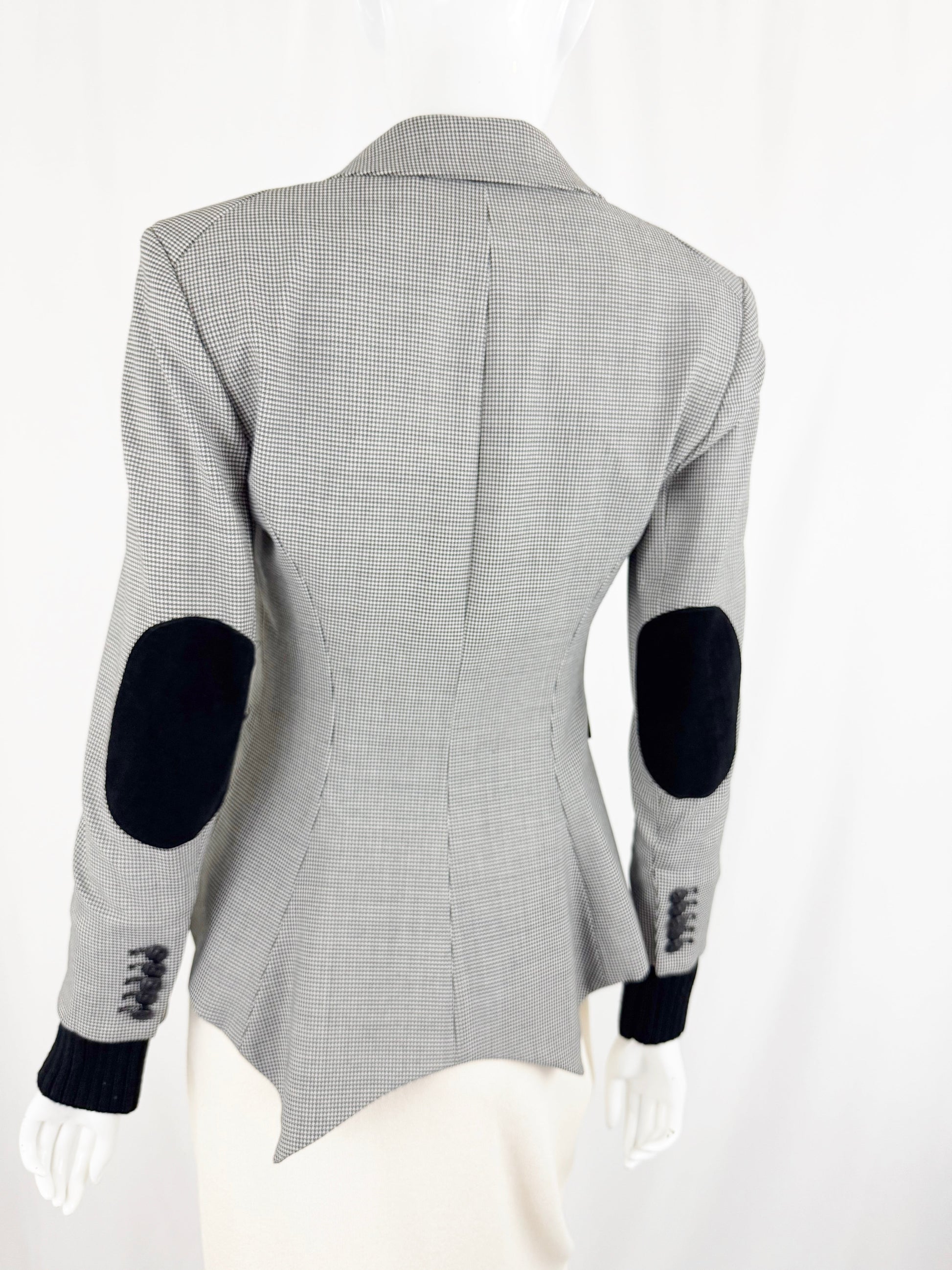 Material: Self: 53% polyester, 43% wool, 4% elastane; Combo (elbow patches): Goat leather